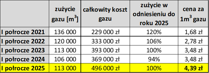 • Główną przyczyną wyższych kosztów jest wzrost ceny gazu (z uwzględnieniem wszystkich składowych rachunku, w tym opłat stałych).